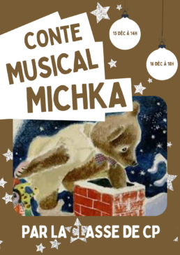 Cette semaine, les CP présenteront le fruit de plusieurs semaines de travail : un conte musical sur l'histoire de Michka. Ils joueront d'abord devant leurs camarades lundi après-midi, puis devant leurs familles mardi soir.... Une belle façon de vivre ce temps de Noël.