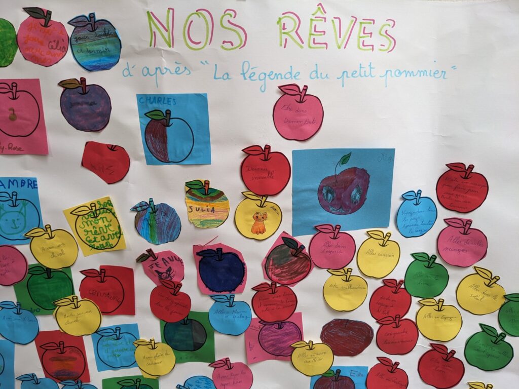 Travail sur la légende du petit pommier d’Alain Goy, art visuel autour de l’arbre, flashmob « Aux arbres citoyens », atelier du goût sur les fruits d’automne, jeux coopératifs… Toutes les activités ont été réalisées par 10 groupes multi niveaux.