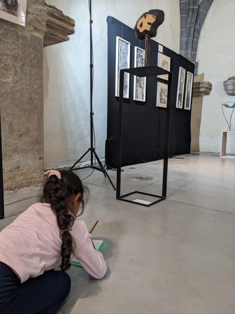 Journées de découvertes en ce début d’année…. Cette semaine, d’un côté les maternelles et les CE/CM découvraient leur classe du dehors pendant que les CP visitaient l’Expo « Les Arts Vagabonds » au Caveau des Jacobins. Les CE/CM ont à leur tour visité l’Expo vendredi.