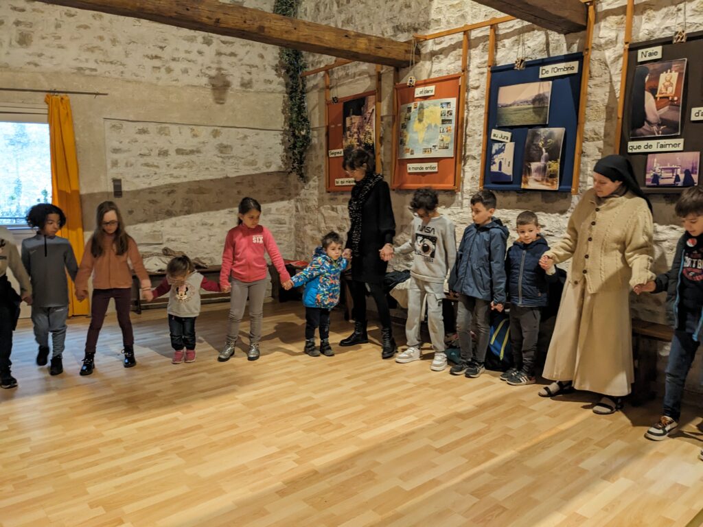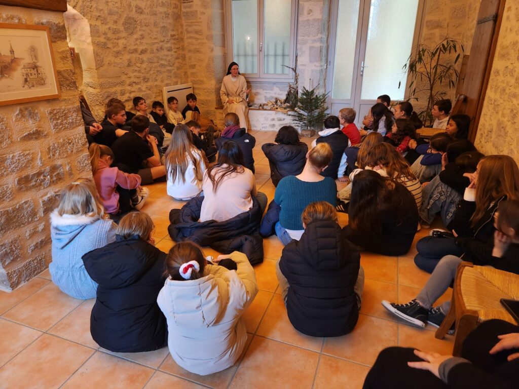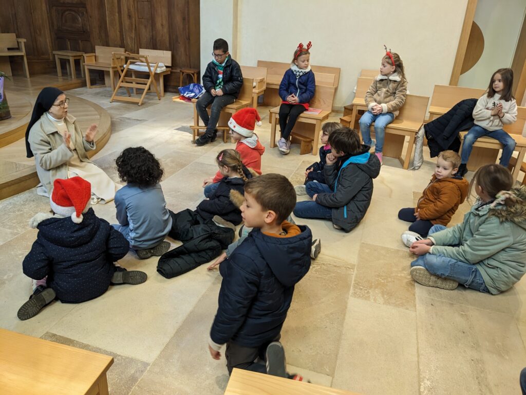 La célébration de Noël chez les Soeurs Clarisses de Poligny avec différents ateliers (conte de Noel, prière du coeur, la crèche, chants….)