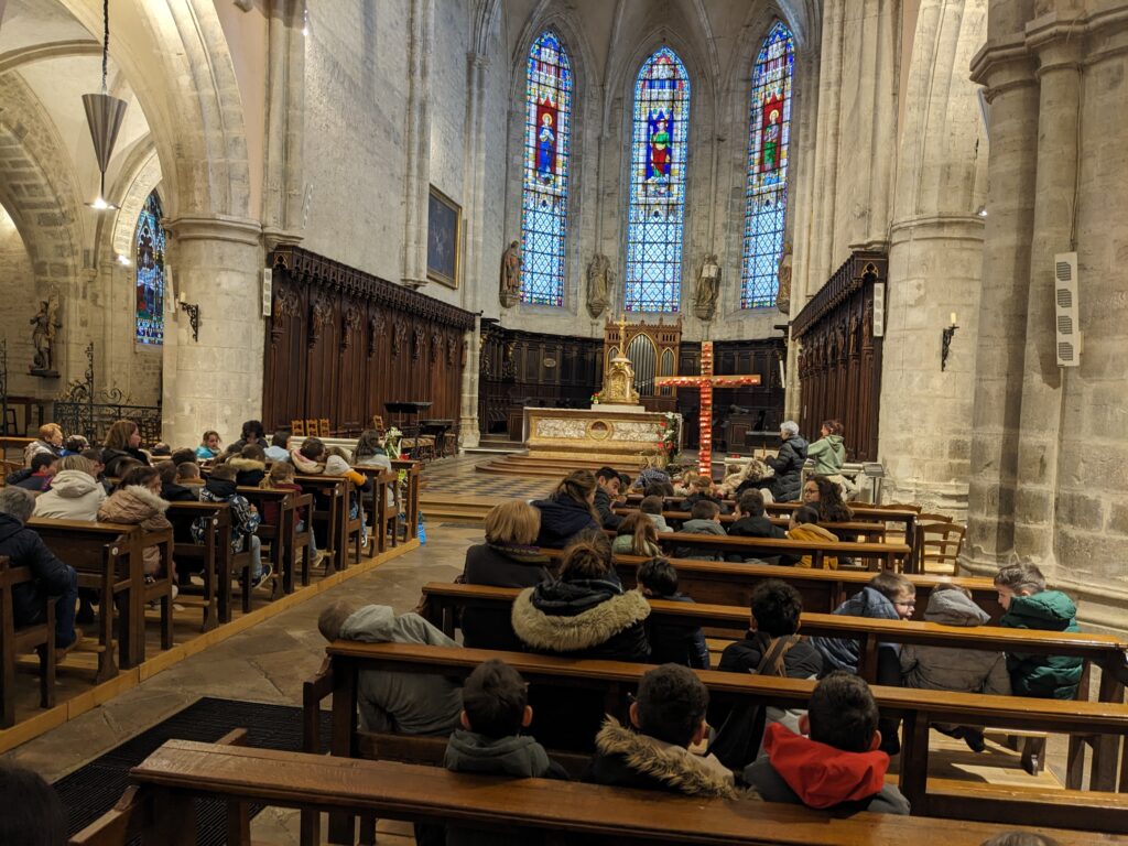 Un grand merci à Chantal pour son explication passionnante du chemin de croix, adaptée aux plus petits, à Marie Pierre pour le chant, à Stéphanie, Josines et Vivien pour leur accompagnement tout au long de la préparation et de l’animation de ce temps fort.